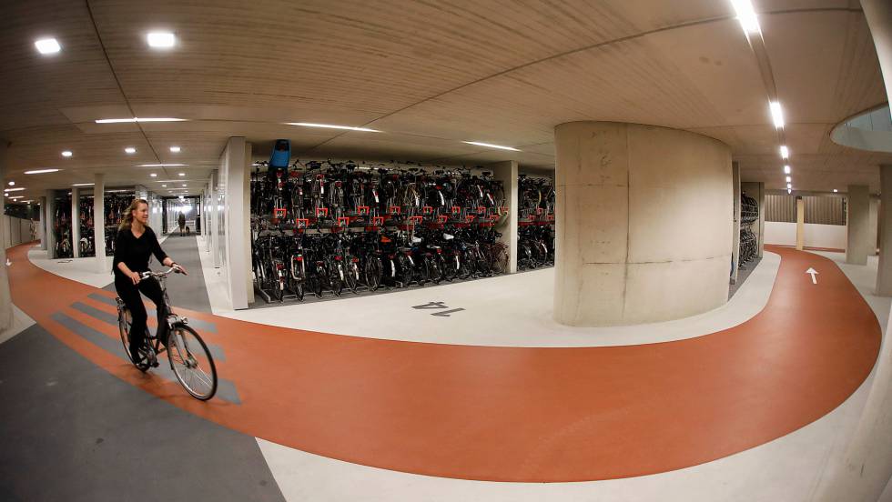 Com 17 milhões de habitantes, há na Holanda 23 milhões de bicicletas. As famílias têm três em média, de acordo com o Escritório Central de Estatísticas. A Bicicletas Recreativas, organização que calcula seu uso, diz que é o veículo mais utilizado (84% da população); é o país com mais bicicletas por habitante (1,3), seguido pela Dinamarca (0,8) e o Japão (0,6); 16% usam modelos elétricos, e destes, 6% têm uma de corrida. Existem 88.000 quilômetros de rotas adaptadas, entre estradas e caminhos municipais, e 94% das viagens começam na porta de casa. O Governo de centro-direita pretende investir 345 milhões de euros (1,45 bilhão de reais) em infraestrutura para que outras 200.000 pessoas as levem ao trabalho. Impressionante, mas onde estacioná-las com uma densidade de população de 412 habitantes por quilômetro quadrado? Em estacionamentos subterrâneos gigantescos.